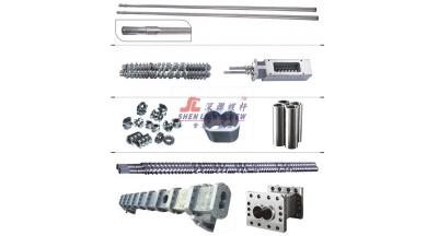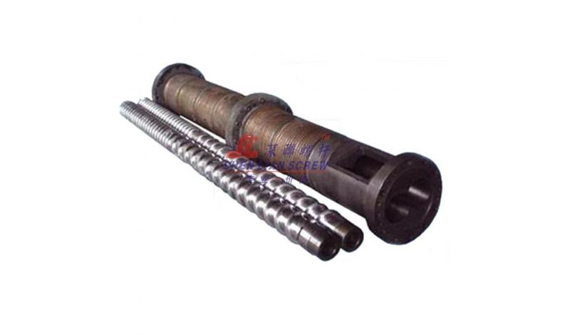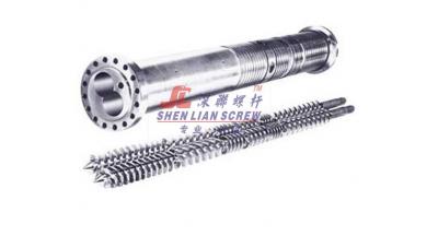 异向平双螺杆料管:Ф50mm-Ф105mm、长径比L/D=16-36、锥型双孔螺杆料管规格:Ф35mm-Ф105mm